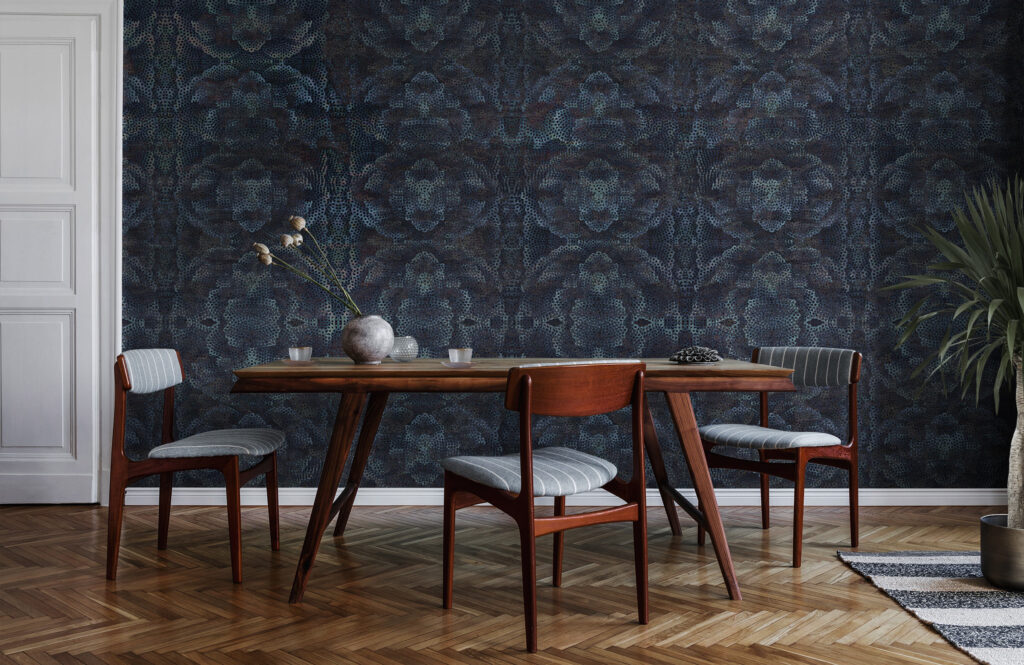 Blue wallpapers come in endless variations. From iconic navy blue wallpapers to the barely-there ombre effect of powder blue. Each shade brings its own emotion. Pale duck-egg tones open up smaller spaces, softening light and giving the illusion of airiness — think bedrooms, nurseries, or bathrooms. Rich sapphire and indigo tones add drama, wrapping a dining room or home office in a cocoon of depth and character.