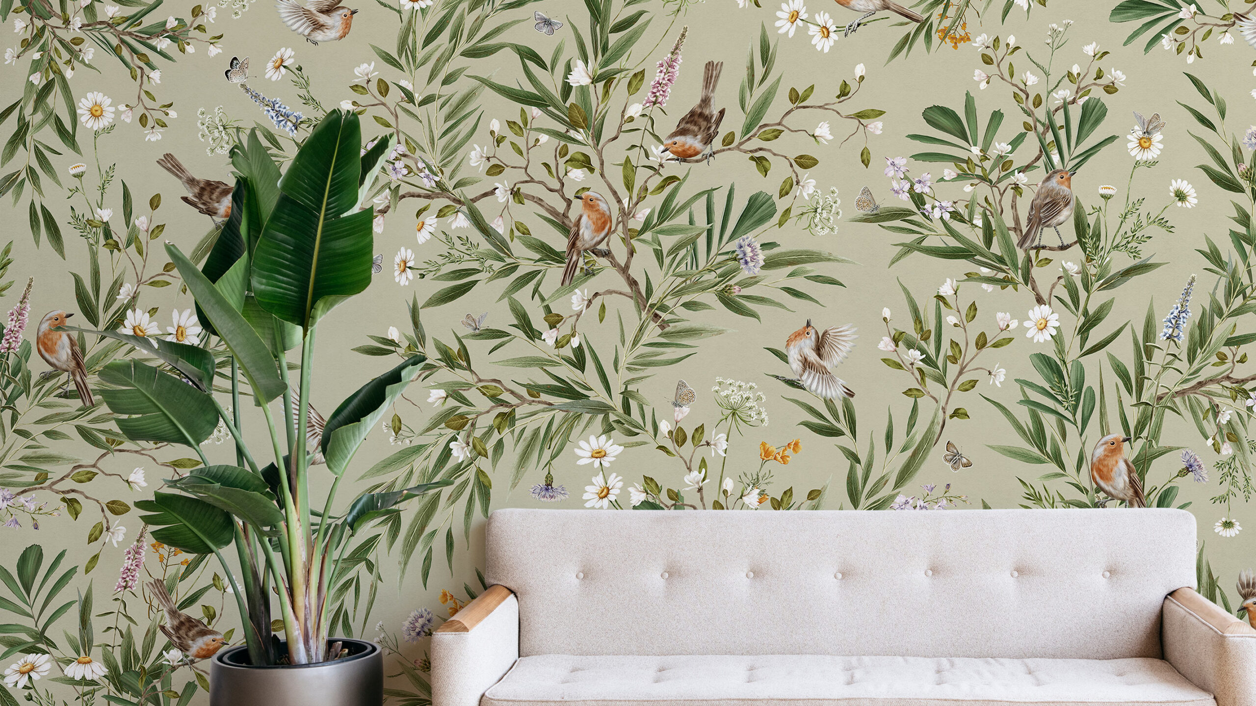 Printed on high-quality non-woven material, it’s easy to install and made to measure for your wall. A lovely choice for anyone who loves birds, botany, and that quiet charm of an English garden morning.