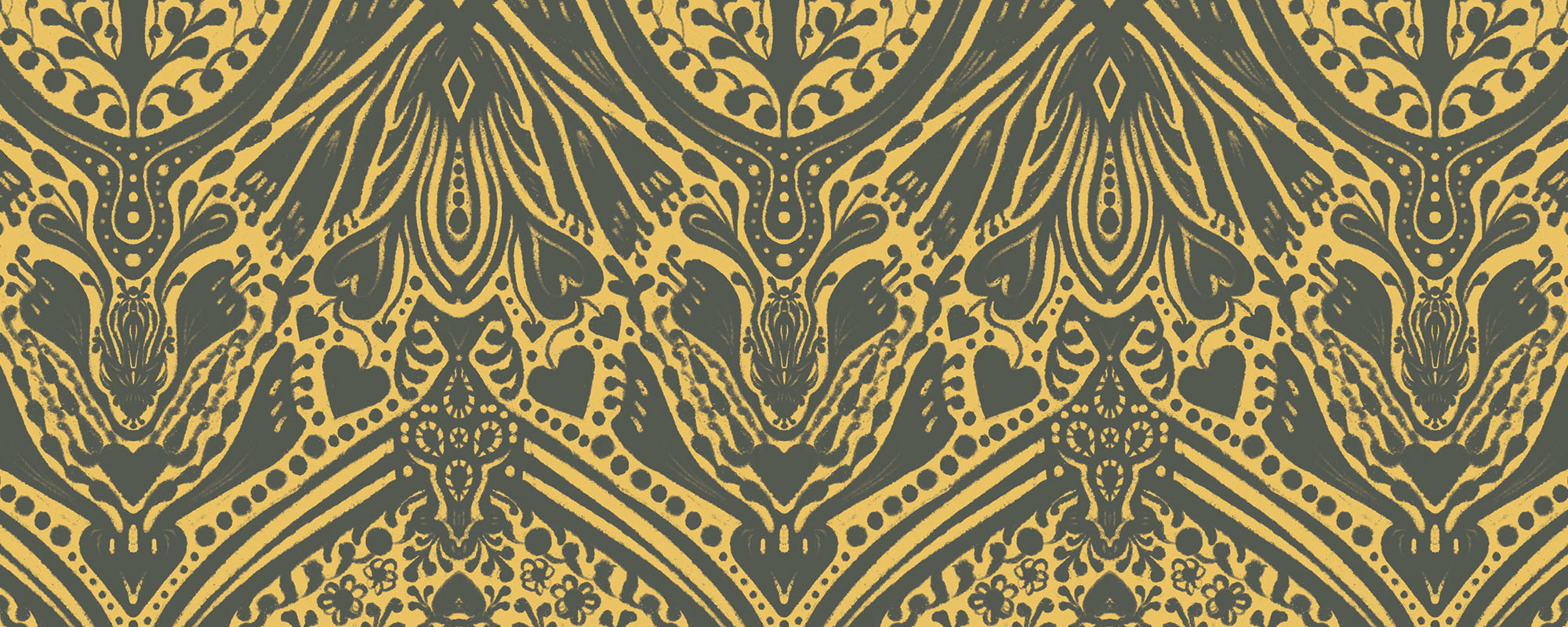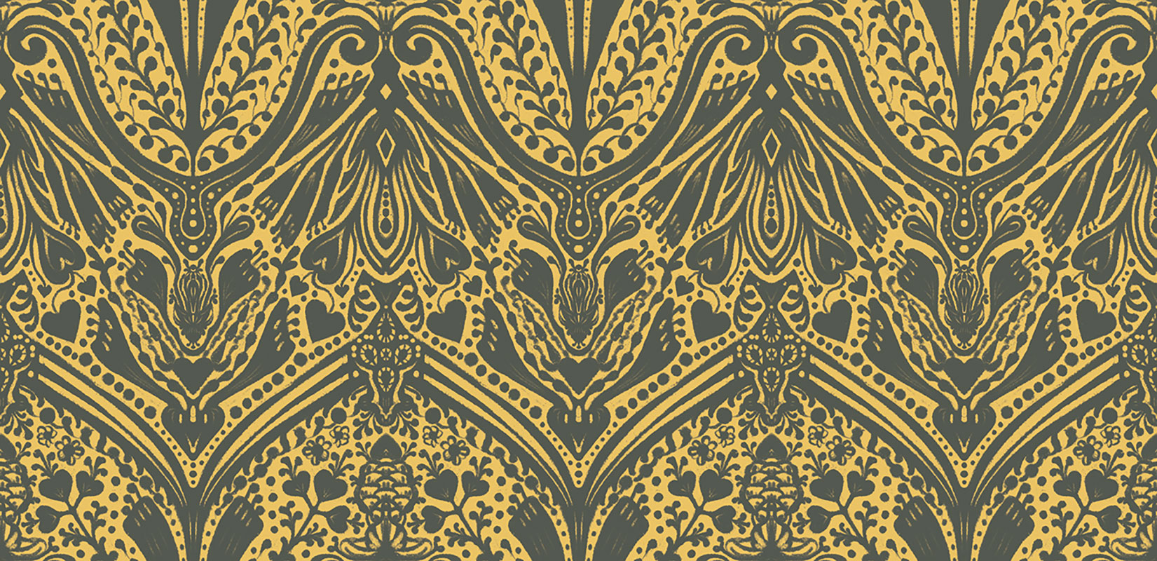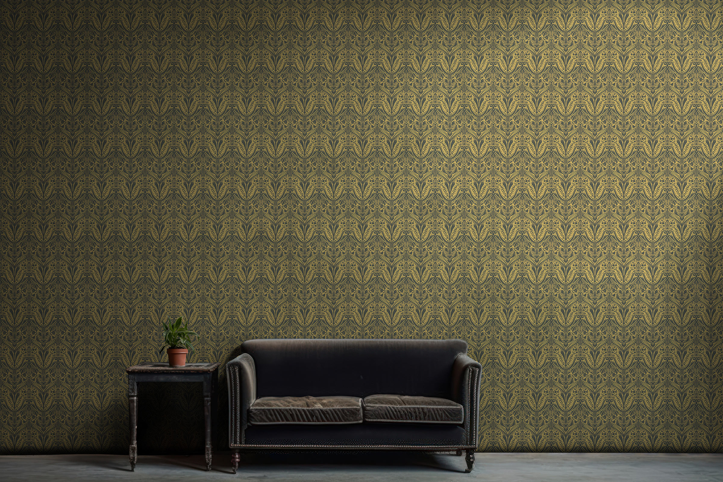 Ballroom Brocade celebrates the grandeur of the past while fitting seamlessly into contemporary homes. This mustard yellow wallpaper is for those who love tradition but aren’t afraid of bold color.