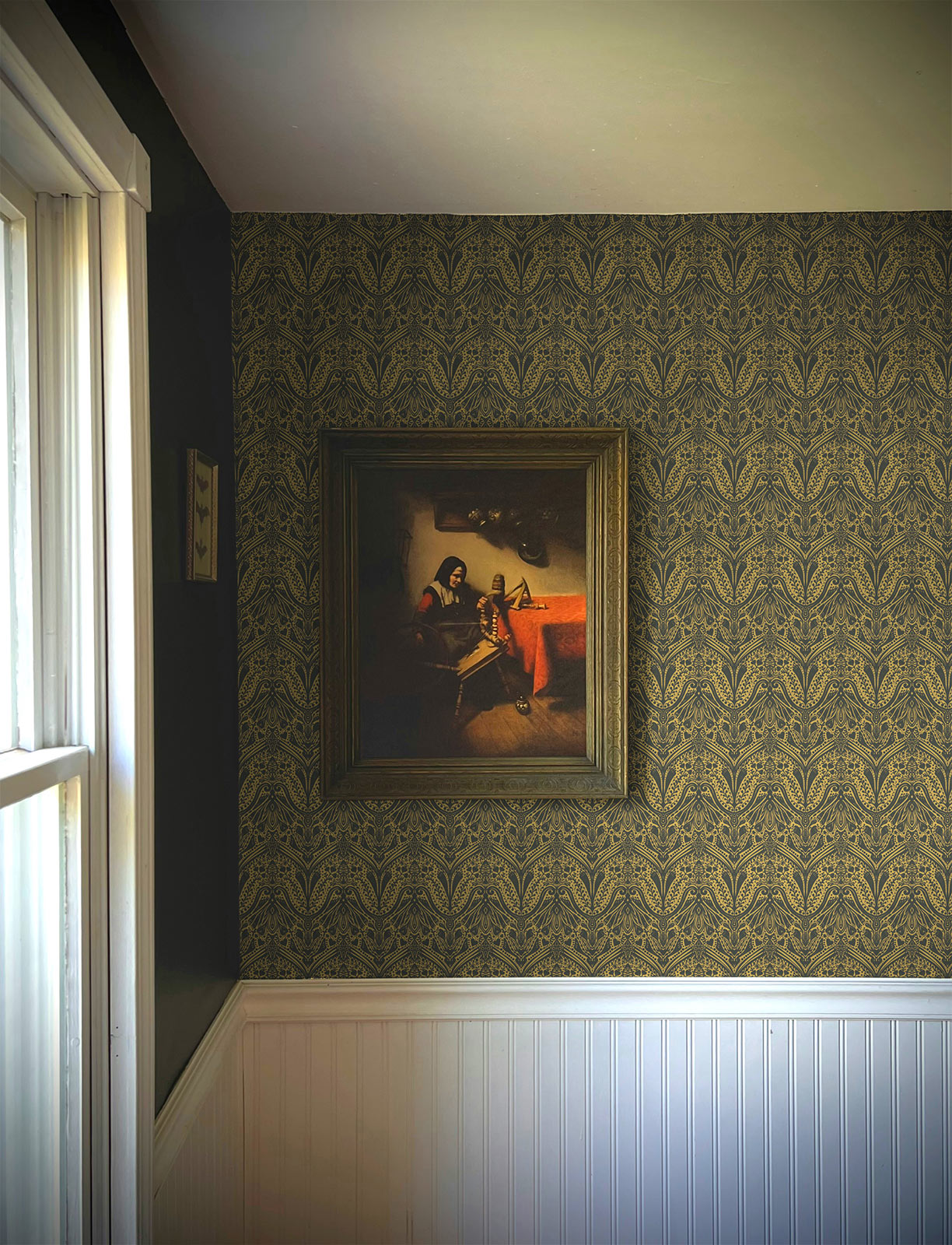 The wallpaper is designed by Monika Lechner. Her love for historical details and classic patterns comes to life in the Heritage Salon wallpaper collection — created for those who value quality, stories, and the small details that make a house feel like home.