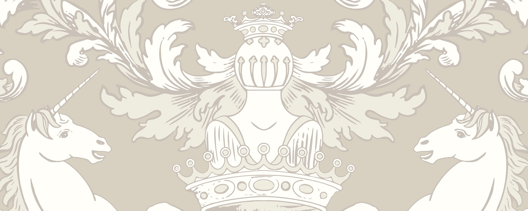 Not every unicorn wears glitter — some prefer beige. Salon of Unicorns – beige turns the heraldic parade into a softer, more versatile statement piece. The crowned unicorns and shields still bring all the grandeur, but the creamy beige backdrop makes it easy to blend into both classic and modern interiors.