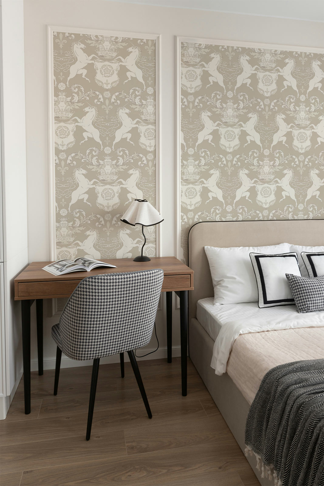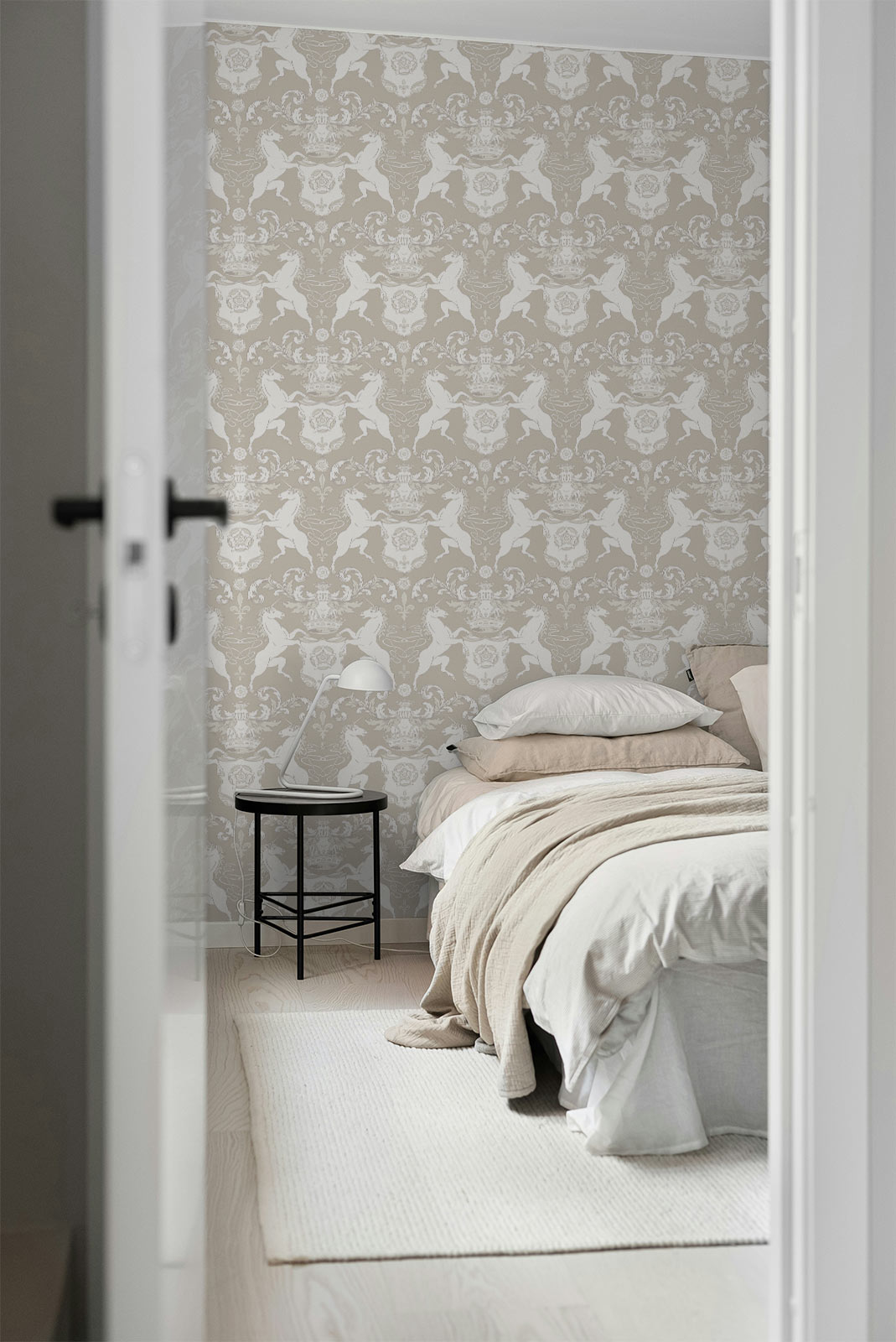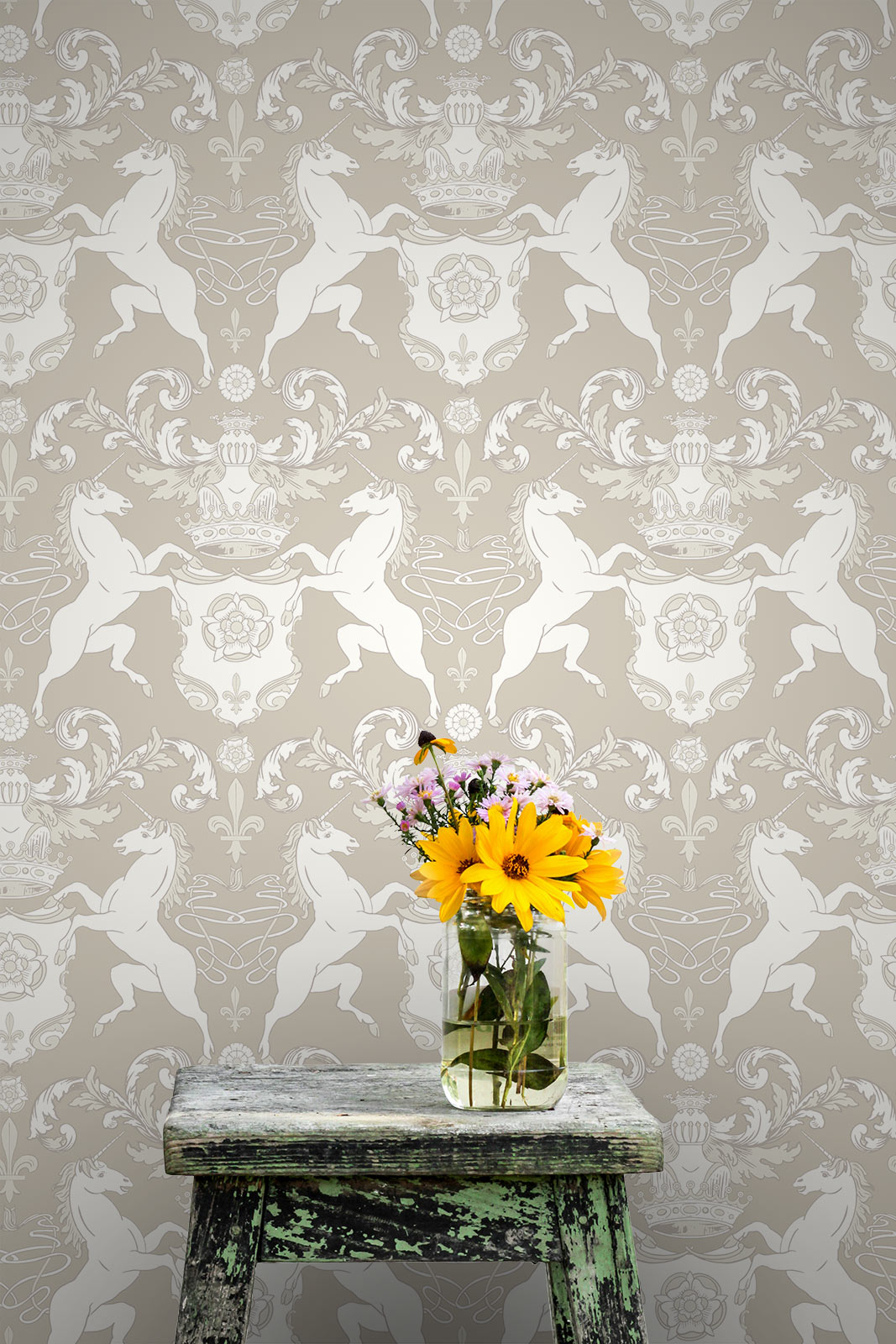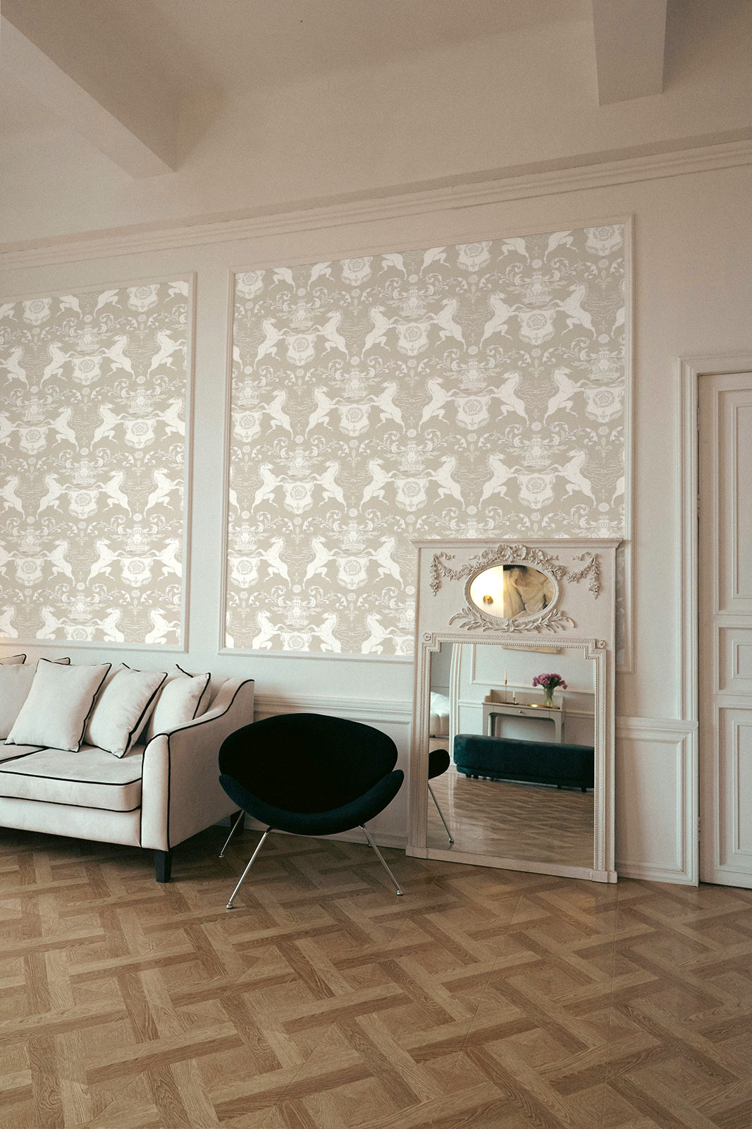 As part of the Heritage Salon collection. Tailored to your wall size, installed with ease, and guaranteed to spark conversation. Because yes — unicorns look good in beige, too.